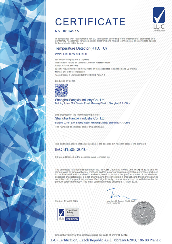 是國內第一家獲得許可證生產的廠家,它適用于具有粉塵性爆炸氣氛的場所。我公司生產的熱電偶、熱電阻,既有國內統一設計產品系列,又有引進、吸收、消化具有國外同類產品性能和優(yōu)點的新品種,技術規(guī)范符合國際電工委員會(
